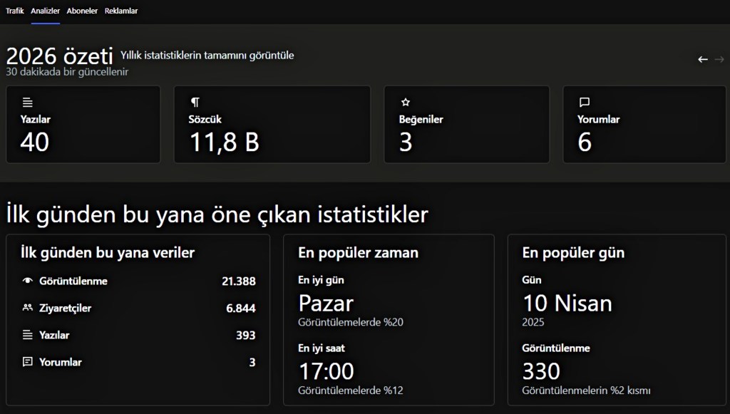 Benim için günlük ya da haftalık blog tutmaksa, sadece sözcük biriktirmekten ibaret değil. Yılın ilk üç ayında 12 bin sözcük yazmak, kitap hacmiyle kıyaslandığında küçük görünebilir ama aslında başka bir derinliği var. Çünkü blog yazarken ben, anlık düşüncelerimi, yaşadığım deneyimleri ve içsel dönüşümlerimi doğrudan paylaşıyorum. Bu, halka hitap eden bir kitaptan farklı olarak daha canlı, daha akışkan ve daha içten bir bağ kurmamı sağlıyor.